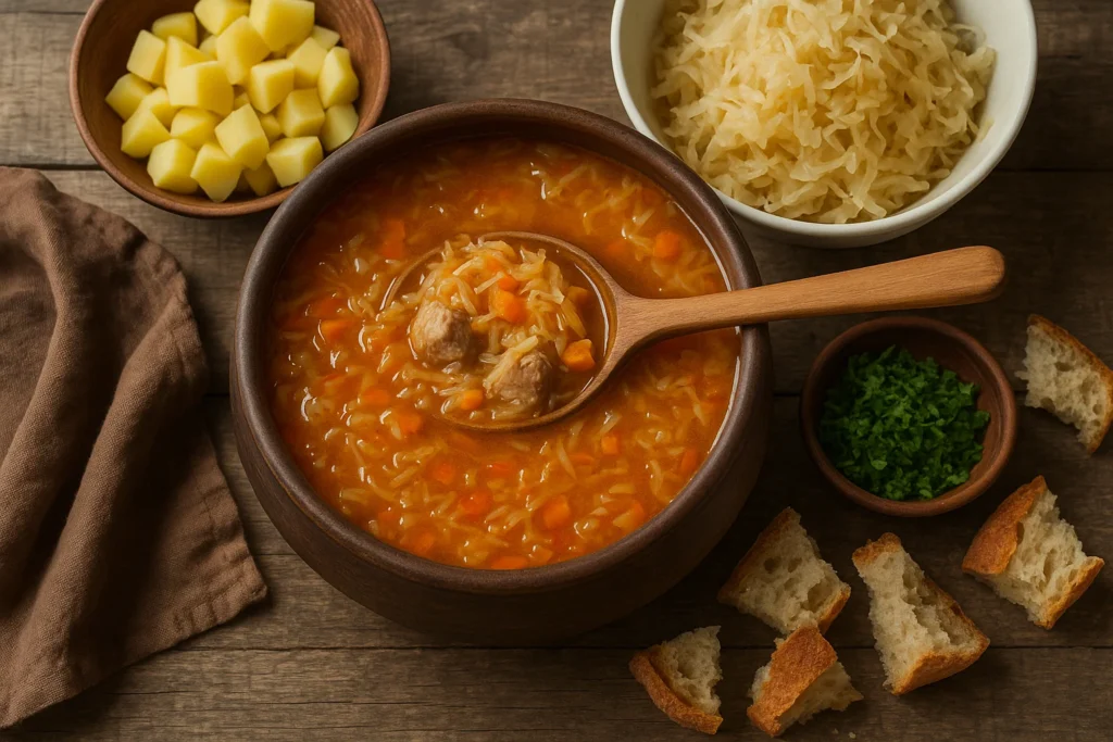 До речі про хліб. Грубий житній — це не просто додаток, це частина страви. М’якушку можна вимочувати в бульйоні (так смачніше раза в два), а скоринку — хрумкати просто так. Уявіть: зимовий вечір, тепла кухня, тарілка димлячого капусняку і свіжий хліб…